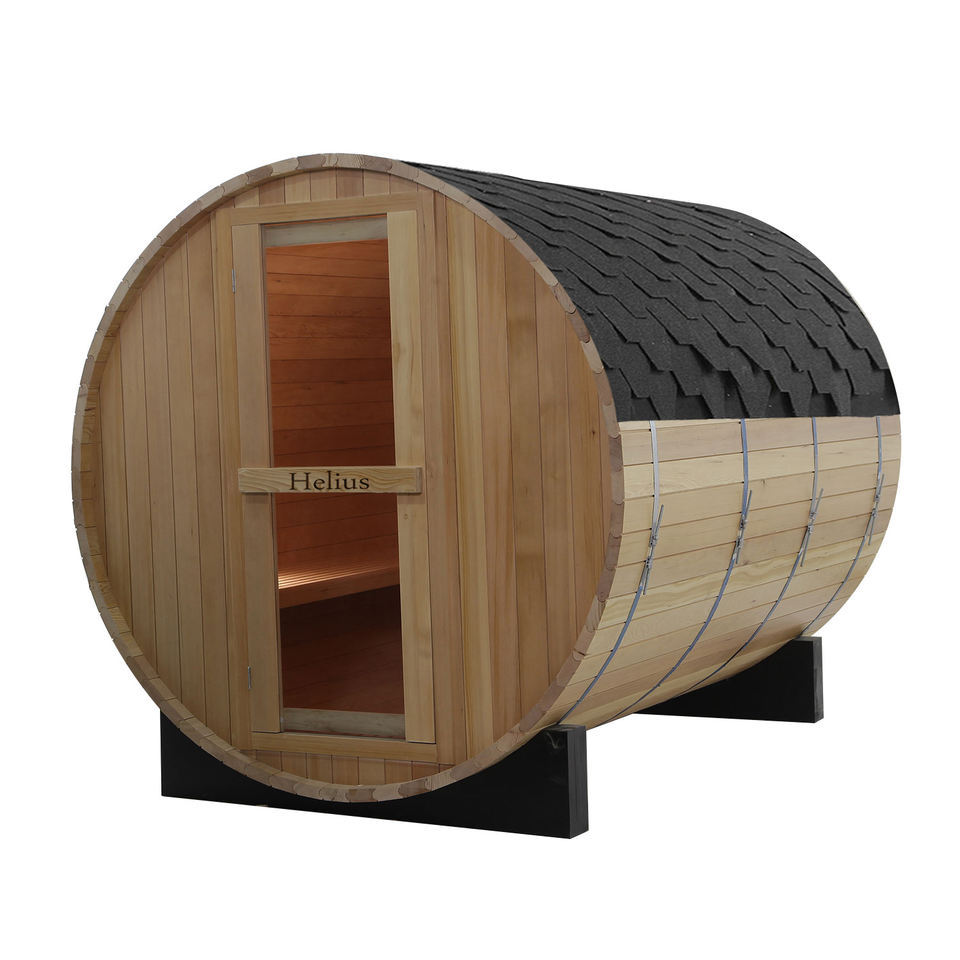 HELIUS Wholesale Price Outdoor Solid Wood Hemlock Round Barrel Steam Sauna Room