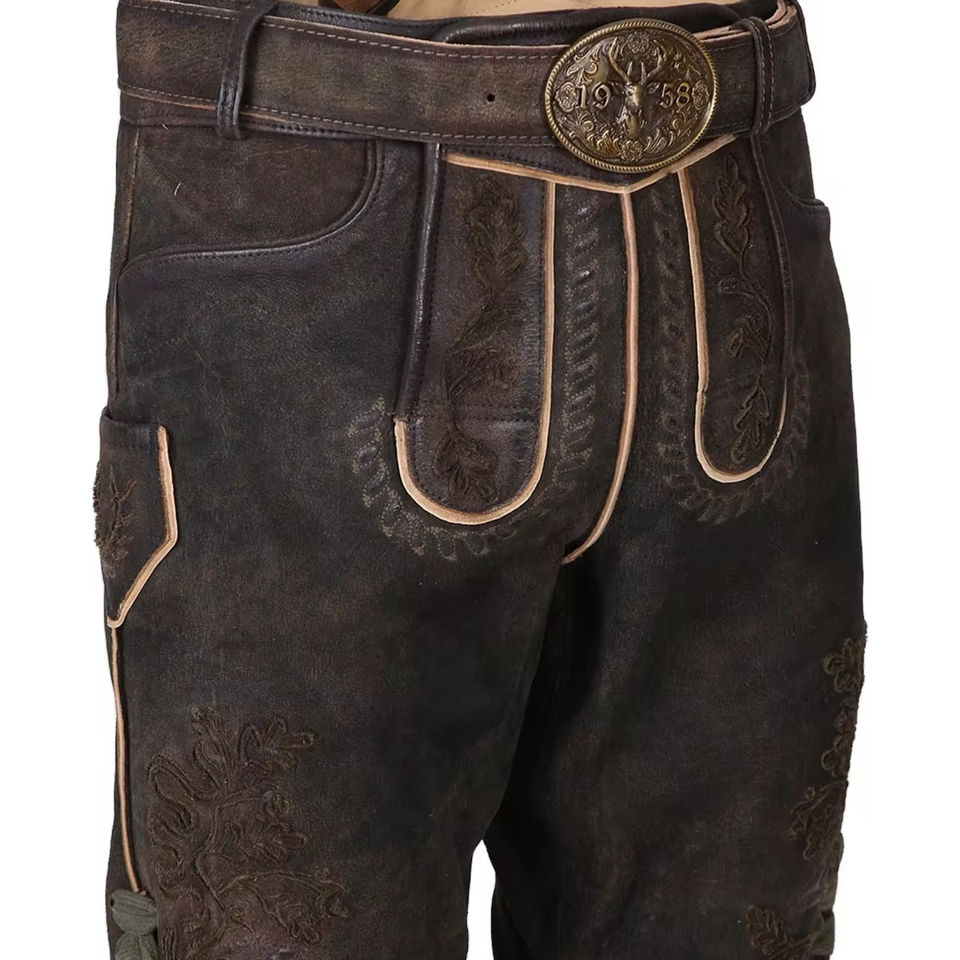HERREN BAVARIAN BROWN OKTOBERFEST LEDERHOSEN Pants Trousers Trachten Pants Custom Leather Fabric Cowhide Suede Leather 2025