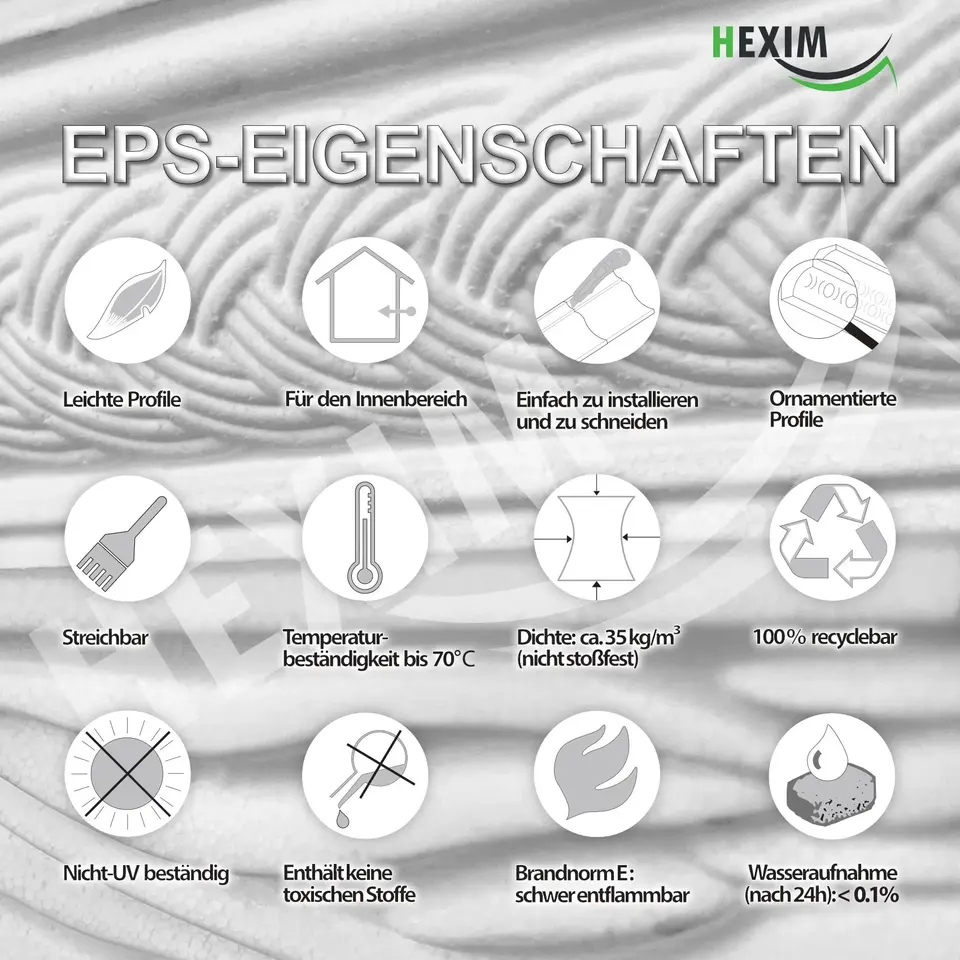 MARBET DESIGN Cornices 200cm XPS Styrofoam white Ceiling moldings Wall moldings