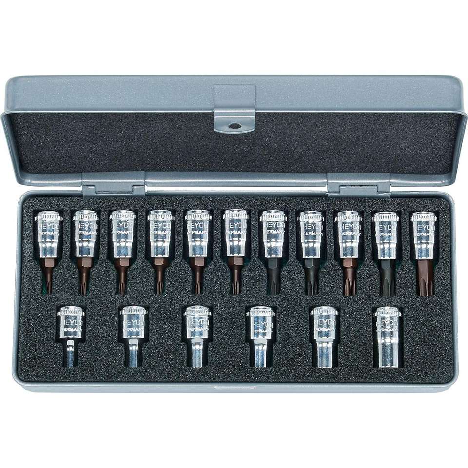 HEYCO 25-50-E/T Combined Set of Sockets and Screwdriver Sockets, 17 pcs., 1/4"