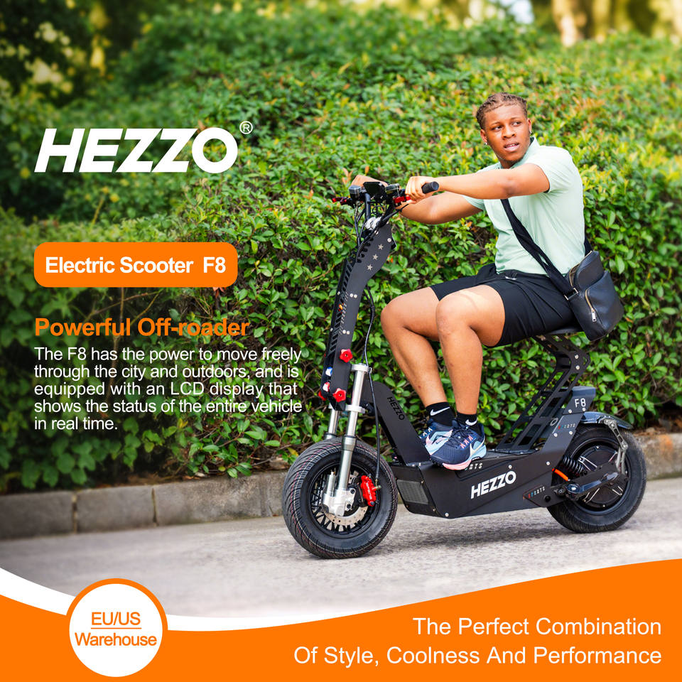 HEZZO F8 16Inch90-100km Range Foldable Gas Scooter Seat 60V 300W 61-80km/h 50Ah Waterproof Full Suspension Aluminum Black