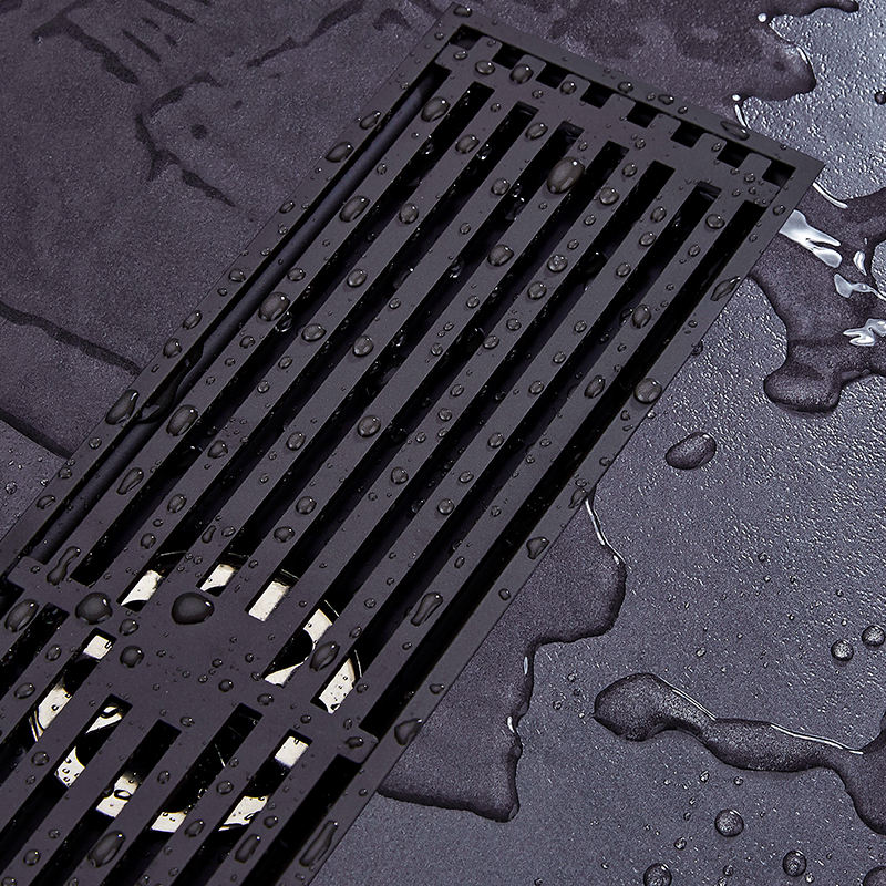 HF Australian Watermark Matte Black Shower Channel Stainless Steel Long Linear Shower Grate Floor Drain for Bathroom