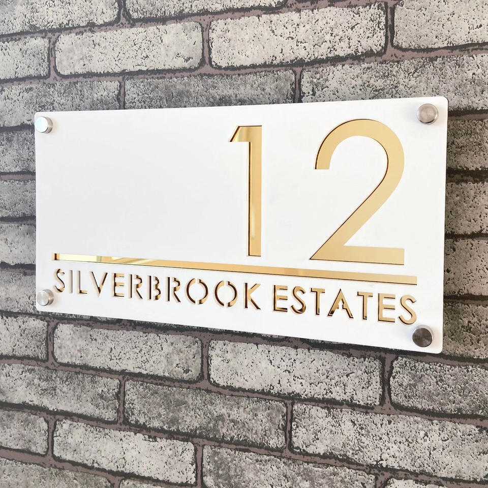 HFBH Modern Design Steel Office Door Name Signage Gold House Number Durable Sign for Hotels and Offices