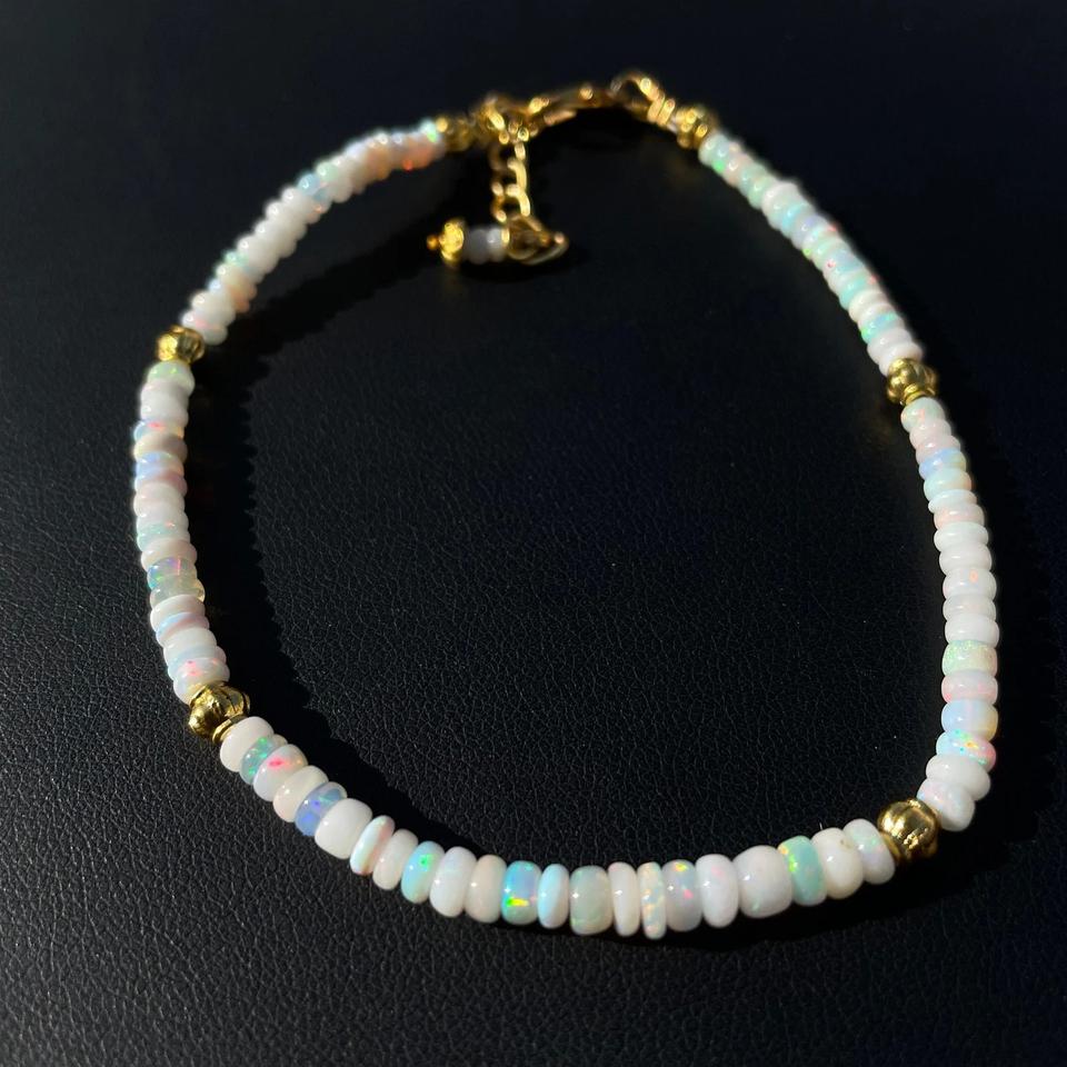 HG-182 Natural Ethiopian Opal Bracelet 4mm Rondelle Smooth Multi-Fire White Sterling Silver Jewelry Loose Nature Crystal