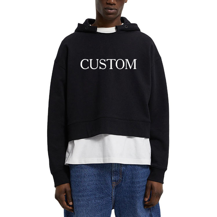HG331 Custom Printed Solid Men's Open Neck Crop Top Hoodie 100% Cotton Summer Oversized Breathable Eco-Friendly Knitted OEM