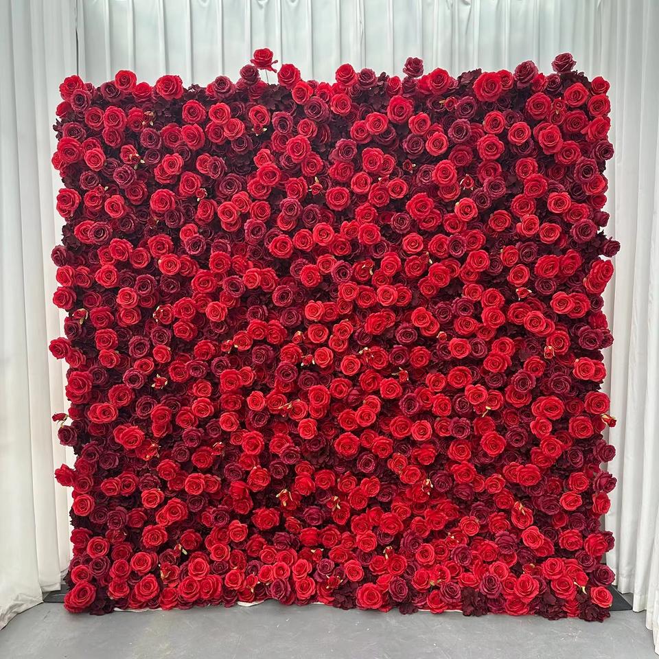 HI-FW017 Brown 8*8 Floral Panels Background Decor Zipper Artificial Silk Rose Flower Wall for Wedding Baby Shower Hanging Floral