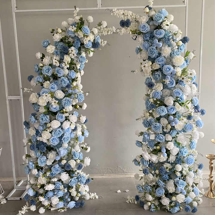 HI-HOA003 Wholesale Artificial Blue Hydrangea Flower Arch Wedding Horn Flower Arch Set Silk Rose Flower Arch Backdrop