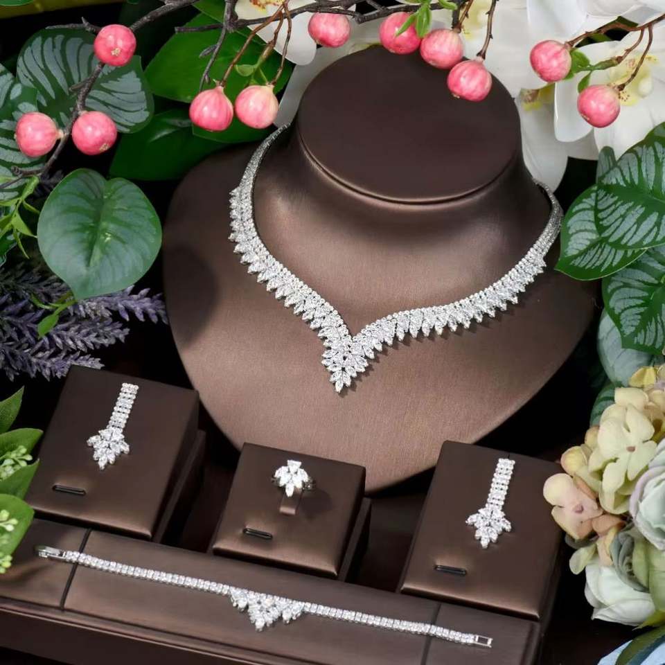 HIBRIDE Beautiful Big White Color Nigerian Wedding Cubic Zircon Necklace Dubai 4PCS Dress Jewelry Sets for Women Party N-498