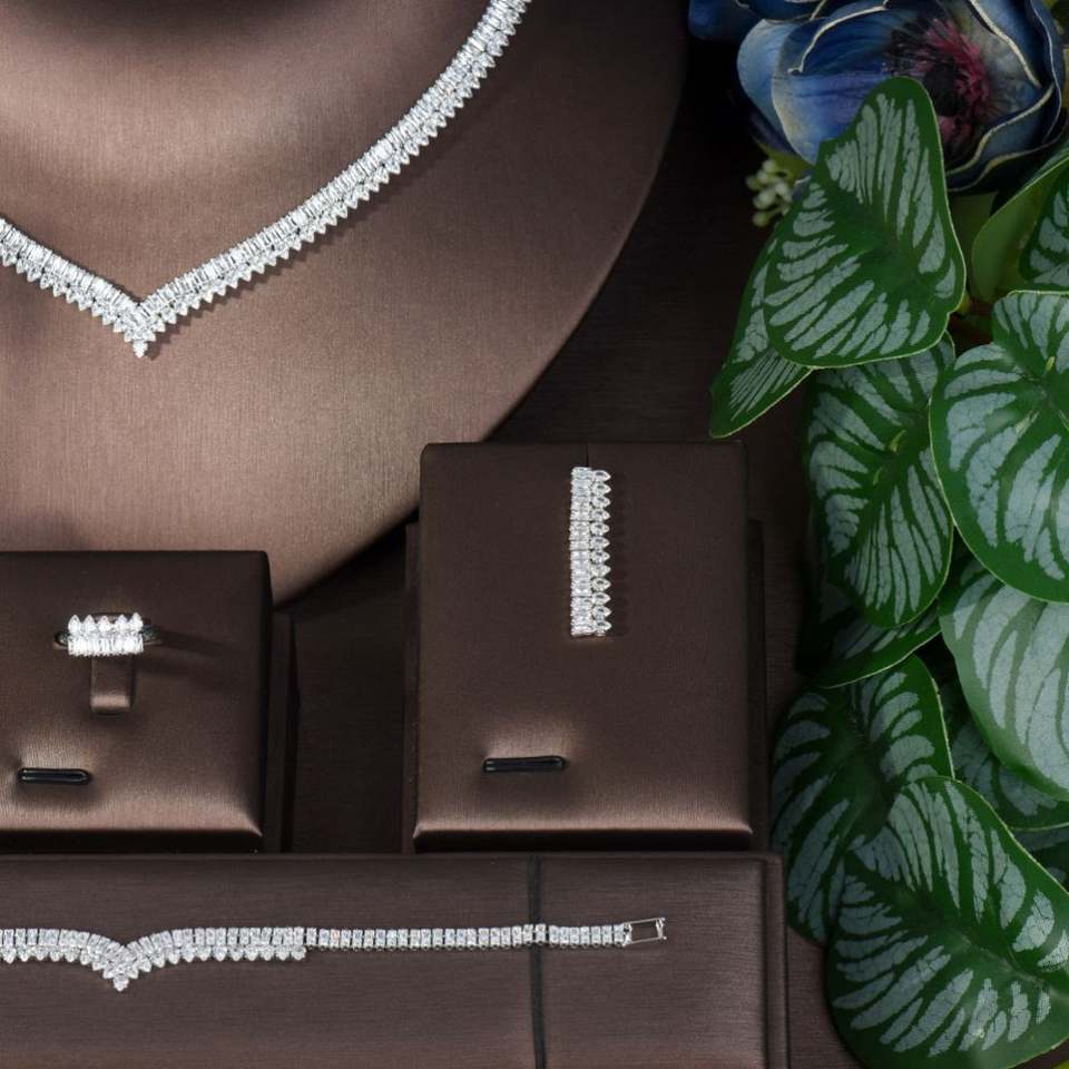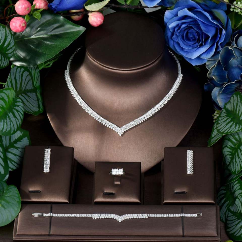 HIBRIDE Beautiful Cubic Zircon White Crystal Bridal Wedding Necklace Earring Party Jewelry Sets for Women Dress Party N-1711