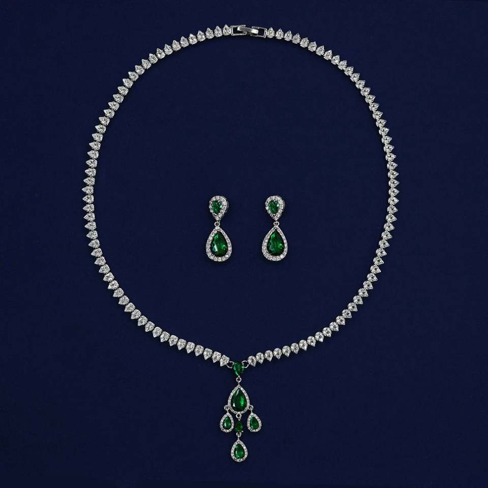 HIBRIDE Beautiful Water Drop Cubic Zircon Luxury Women Wedding Necklace Earring Bridal Party Jewelry Sets N-396