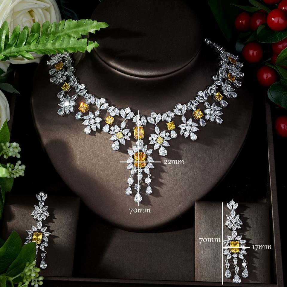 HIBRIDE Beauty Yellow Water Drop Cubic Zircon Pendant Women Jewelry Sets for Bridal Party Accessories Jewelry Gifts N-938