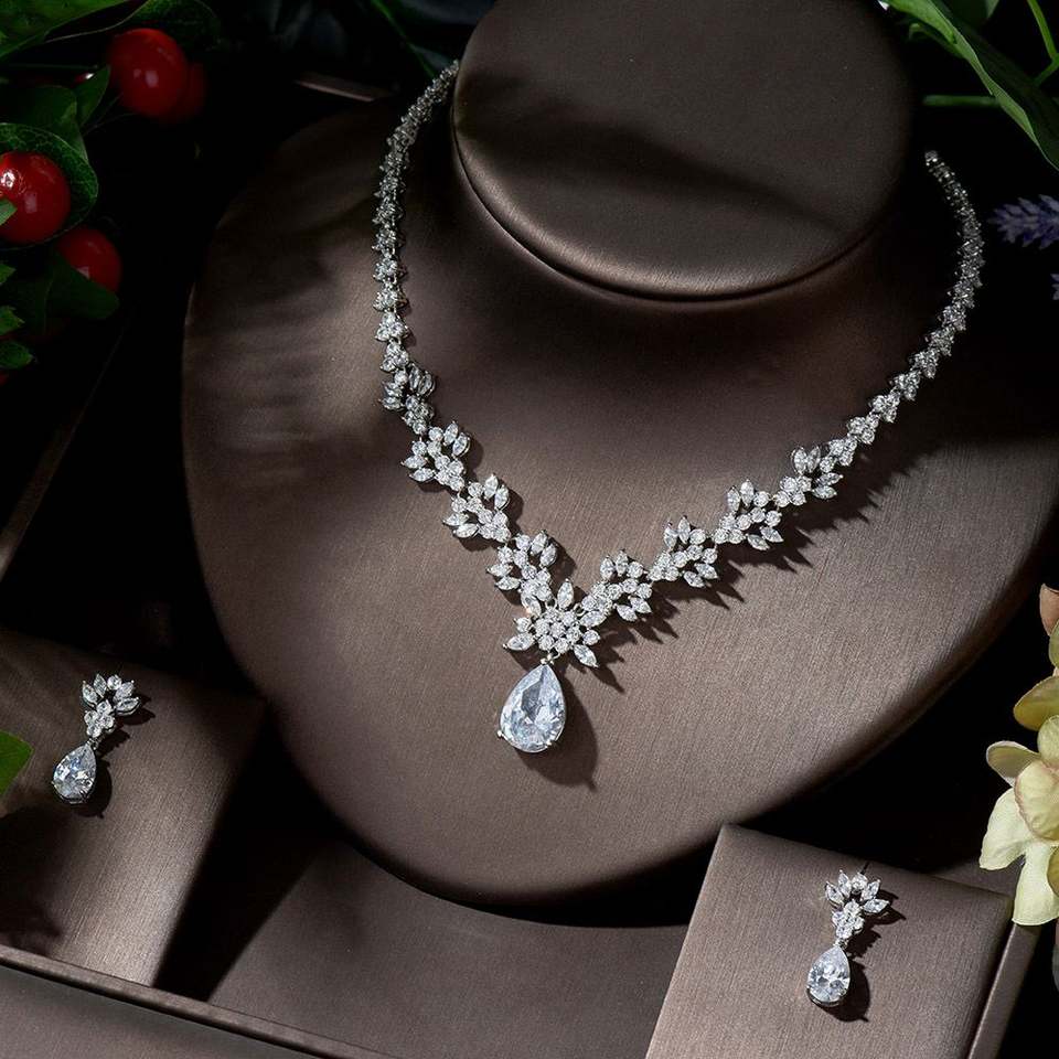 HIBRIDE Bridal Leaf Pendant Jewellery Set Cubic Zirconia Wedding Necklace and Earrings Luxury Bridal Jewellery Set Bijoux N-1386