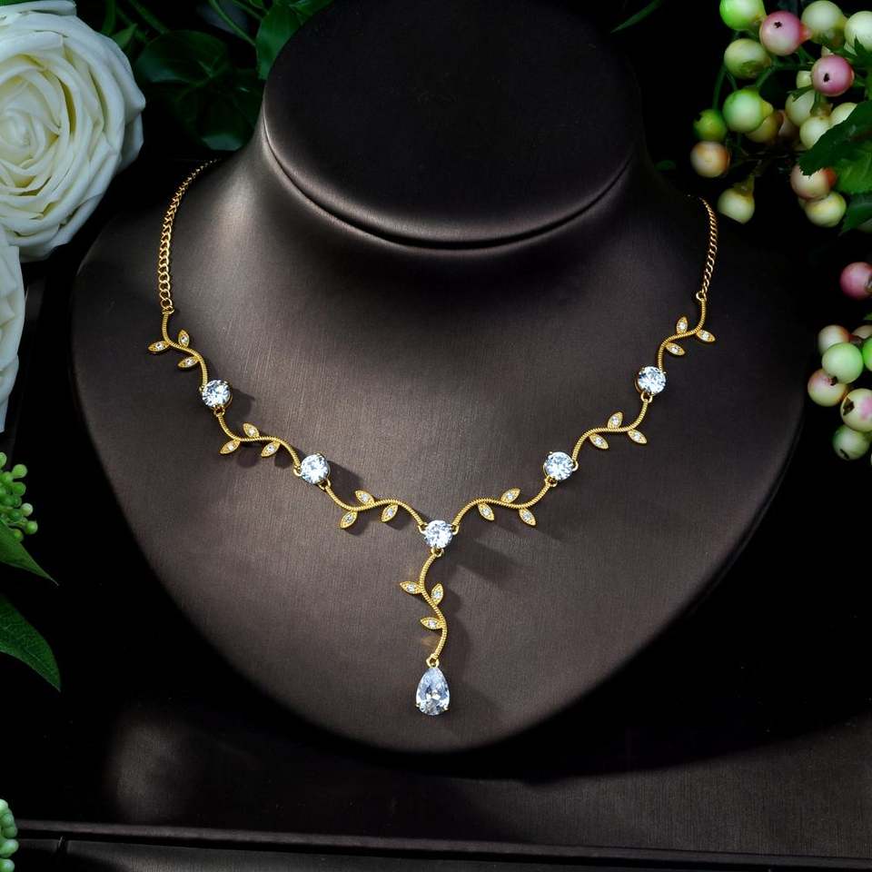 HIBRIDE CLEAR BEST QUALITY BRILLIANT CRYSTAL ZIRCON EARRINGS and NECKLACE BRIDAL JEWELRY SET WEDDING DRESS ACCESSARIES N-201