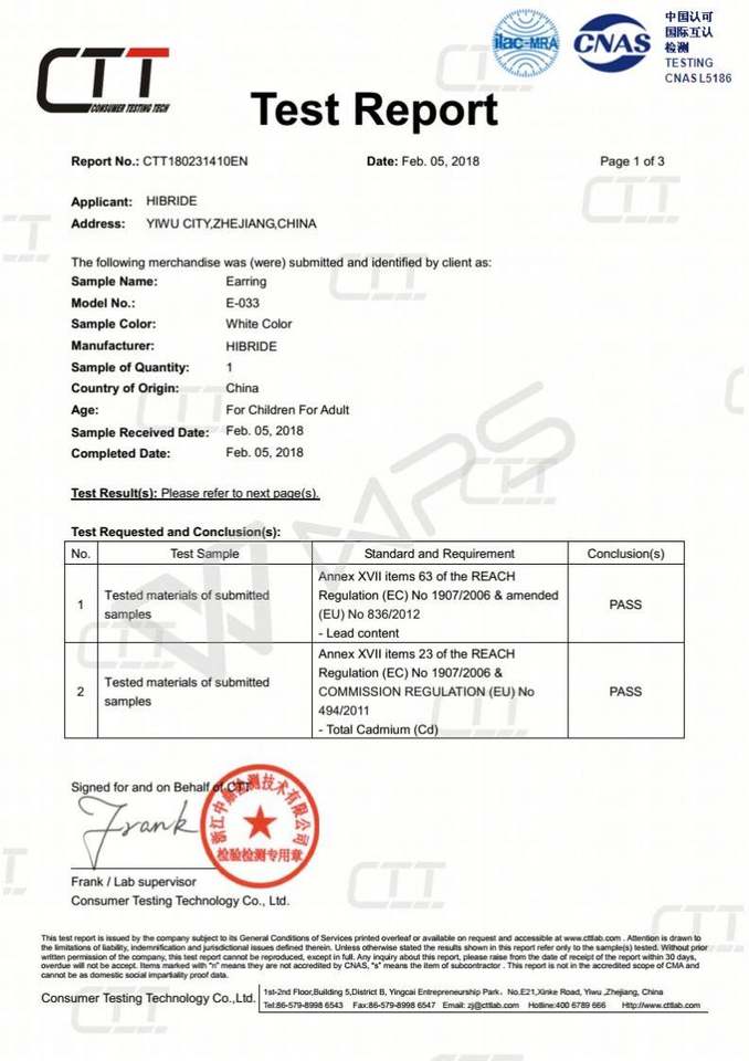 Environmental Standard:Environmental ProtectionLead Nickel, Cadmium Free
