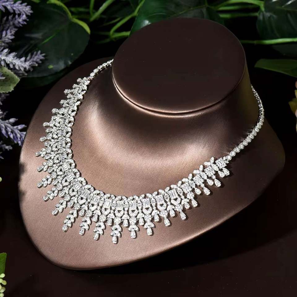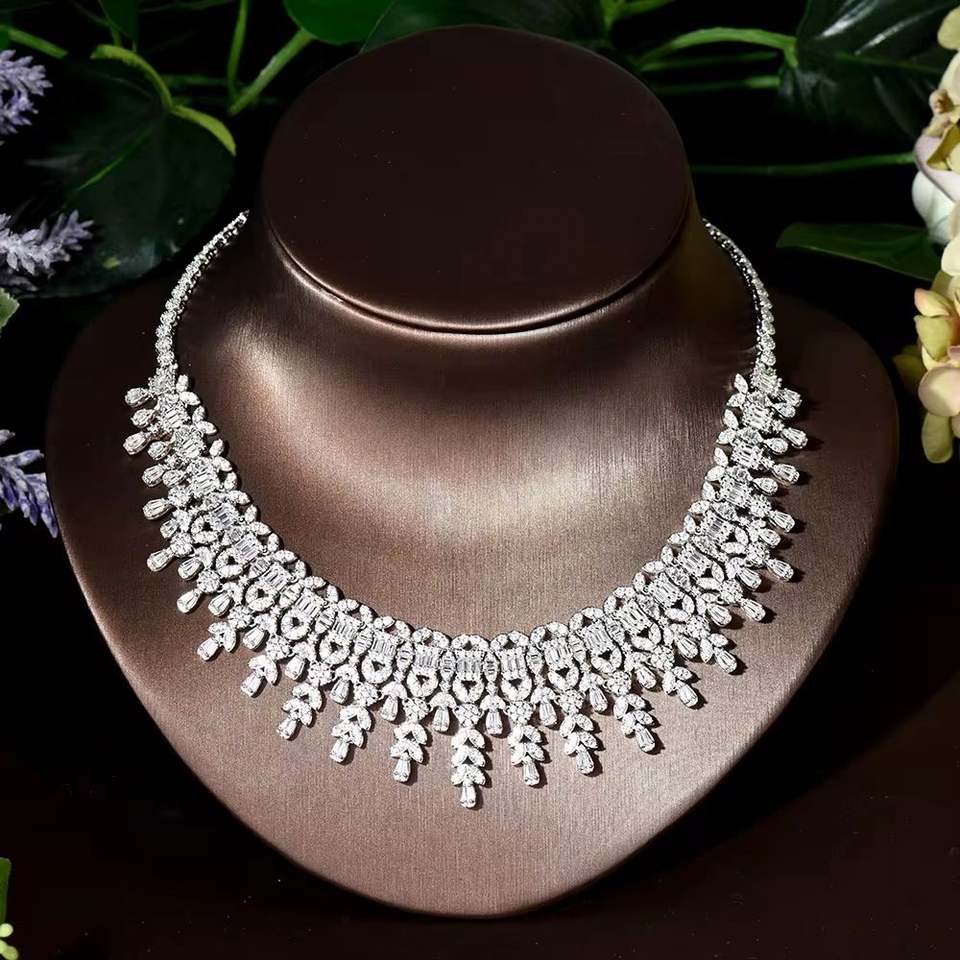 HIBRIDE Classic 4pcs Dubai Jewelry Sets for Women Wedding Party Luxury Cubic Zirconia Indian Necklace Earring Set Bijoux N-163