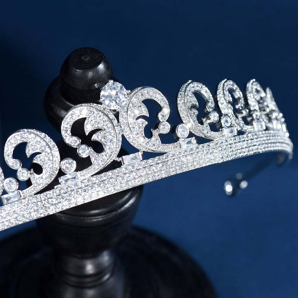HIBRIDE Estilo Europeo Geometric Wedding Hair Accessories Jewelry Cubic Zirconia Crown Headband for Women Bridal Party Gift C-85