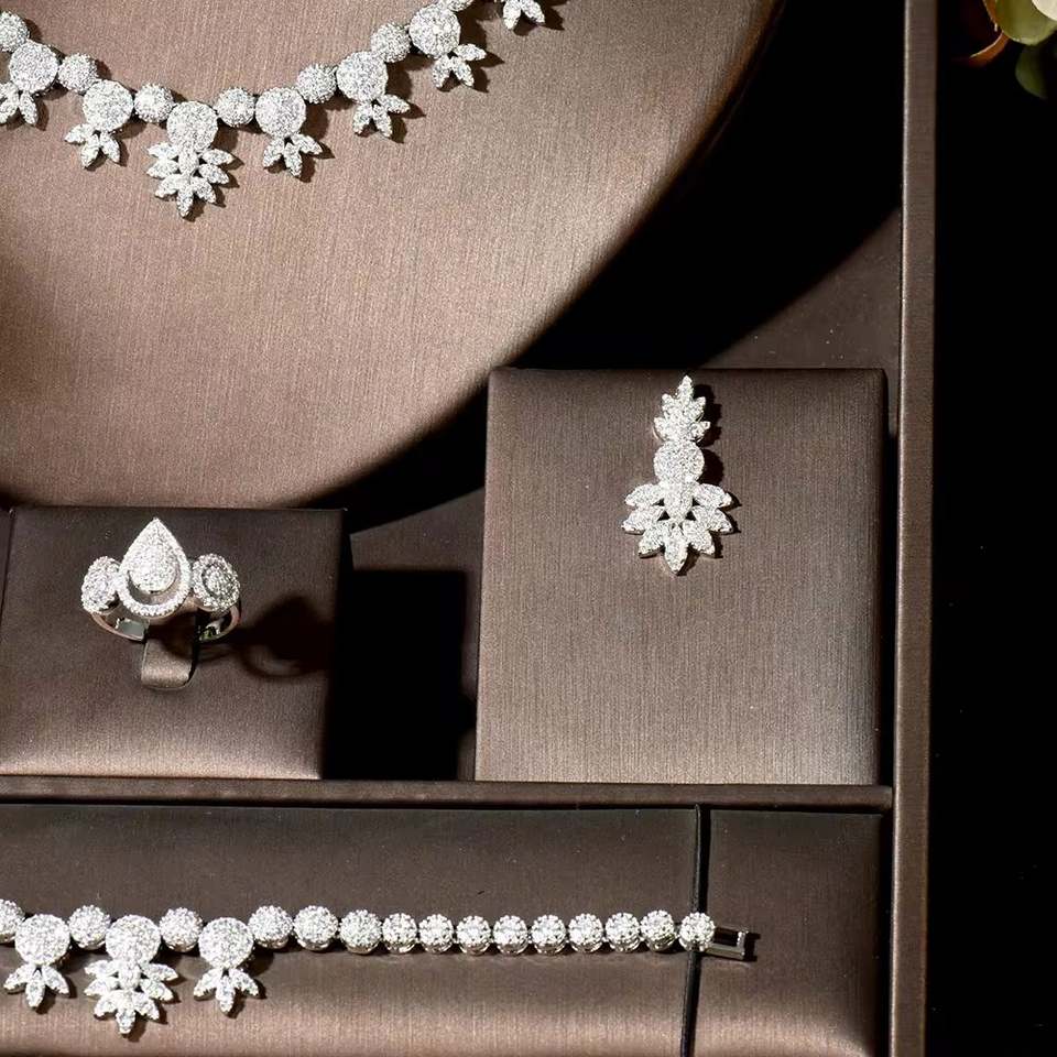 HIBRIDE Fashion Luxury Flower Necklace Earring Set for Women Wedding Party Full Zircon Dubai Bridal Jewelry Set N-1851