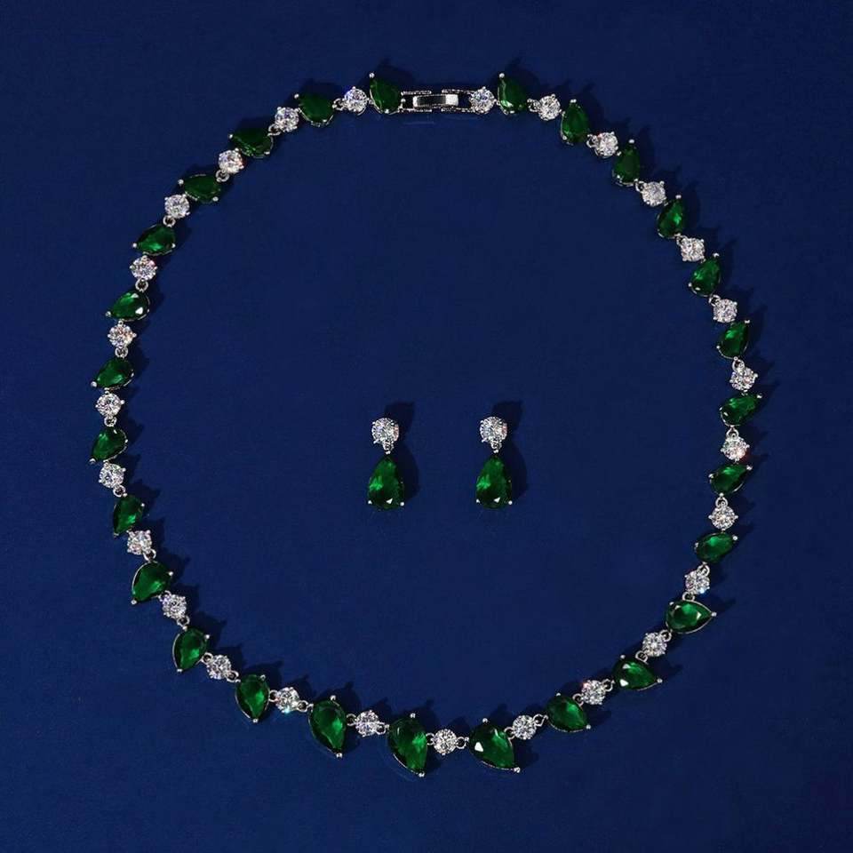 HIBRIDE Latest Water Drop Pink Cubic Zirconia Wedding Jewelry Sets Inlay Luxury Crystal Bridal Jewelry Gifts for Women N-304