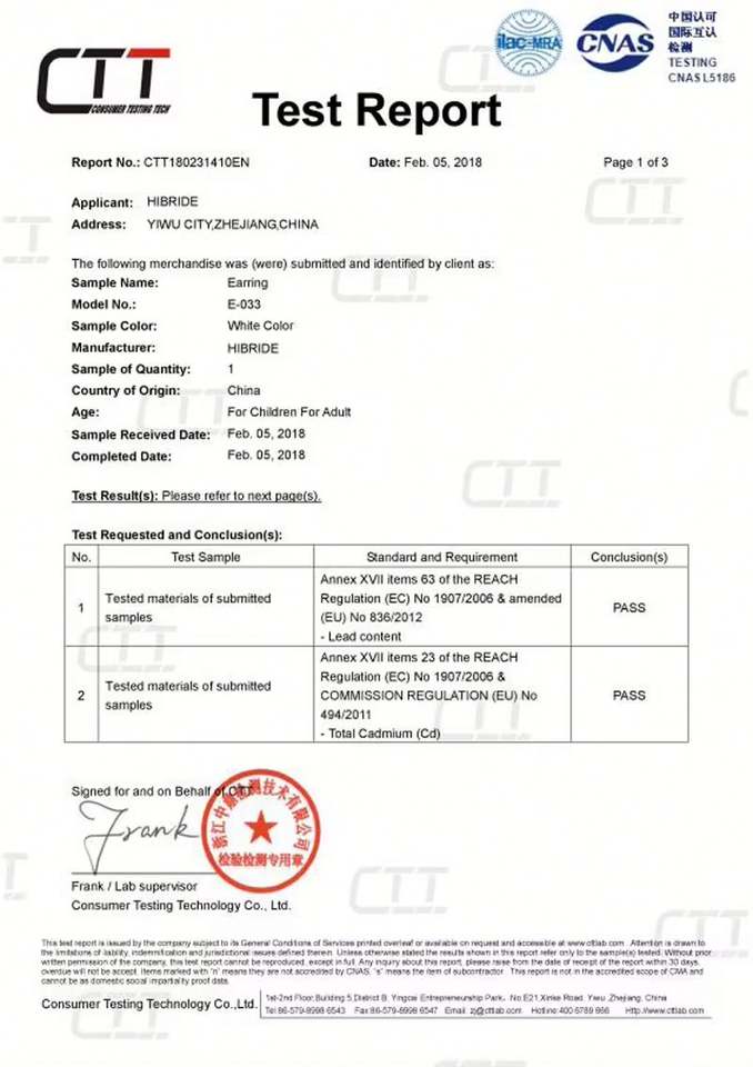 Environmental Standard:Environmental ProtectionLead Nickel, Cadmium Free