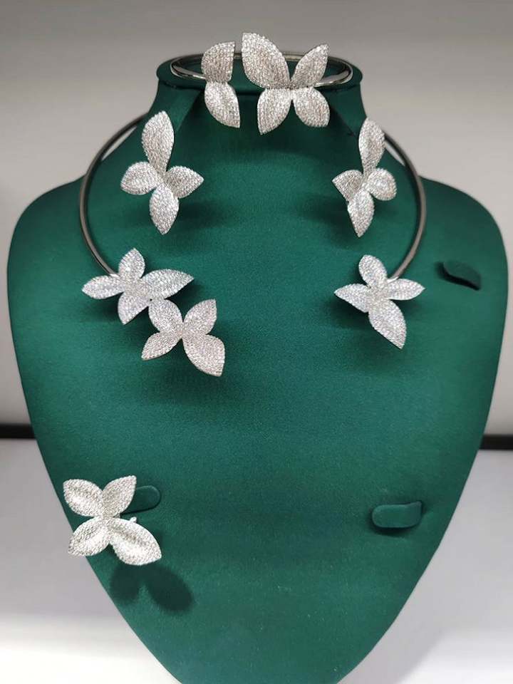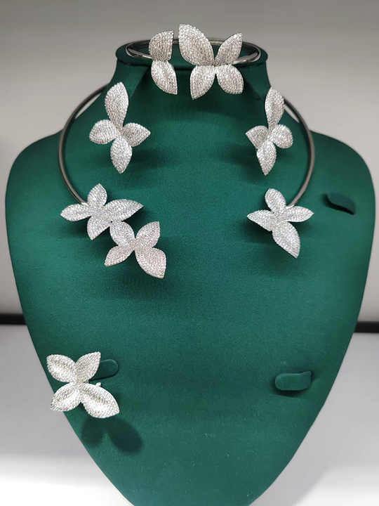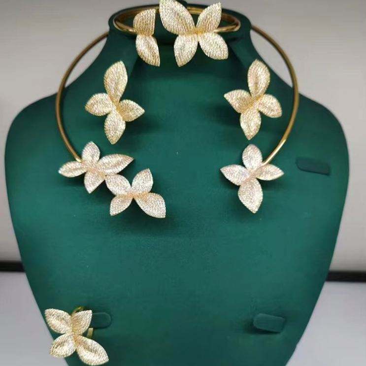 HIBRIDE Luxury Flower Design Fashion Design Dubai Bridal Jewelry Sets Women Wedding Accessories Bangle Earring Necklace N-754