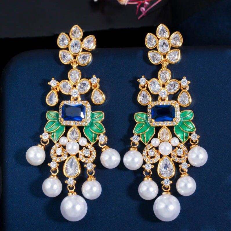 HIBRIDE Luxury Flowers Cubic Zircon Crystal Long Dangle Earrings for Women African Bridal Earring Aretes De Mujer Modernos E-821
