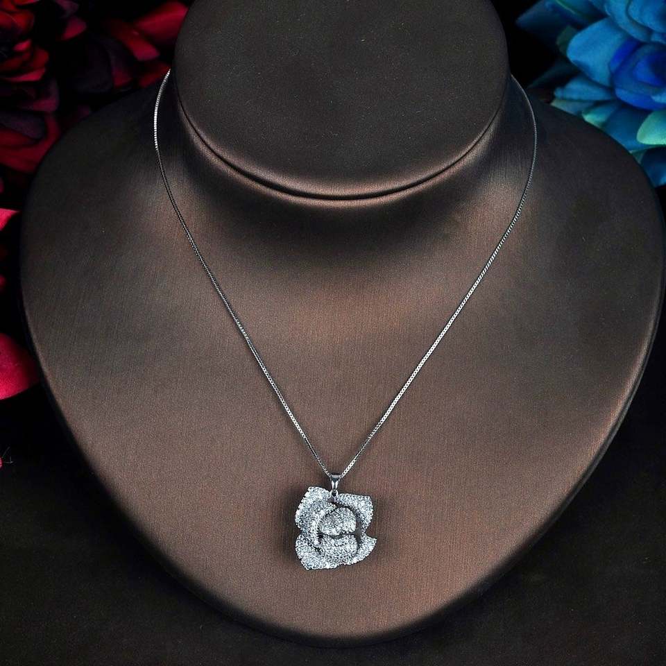 HIBRIDE Luxury Silver Color Flower Pendientes Bridal Women Jewelry Sets Girls Earring Necklace Accessories Engagement Gift N-622
