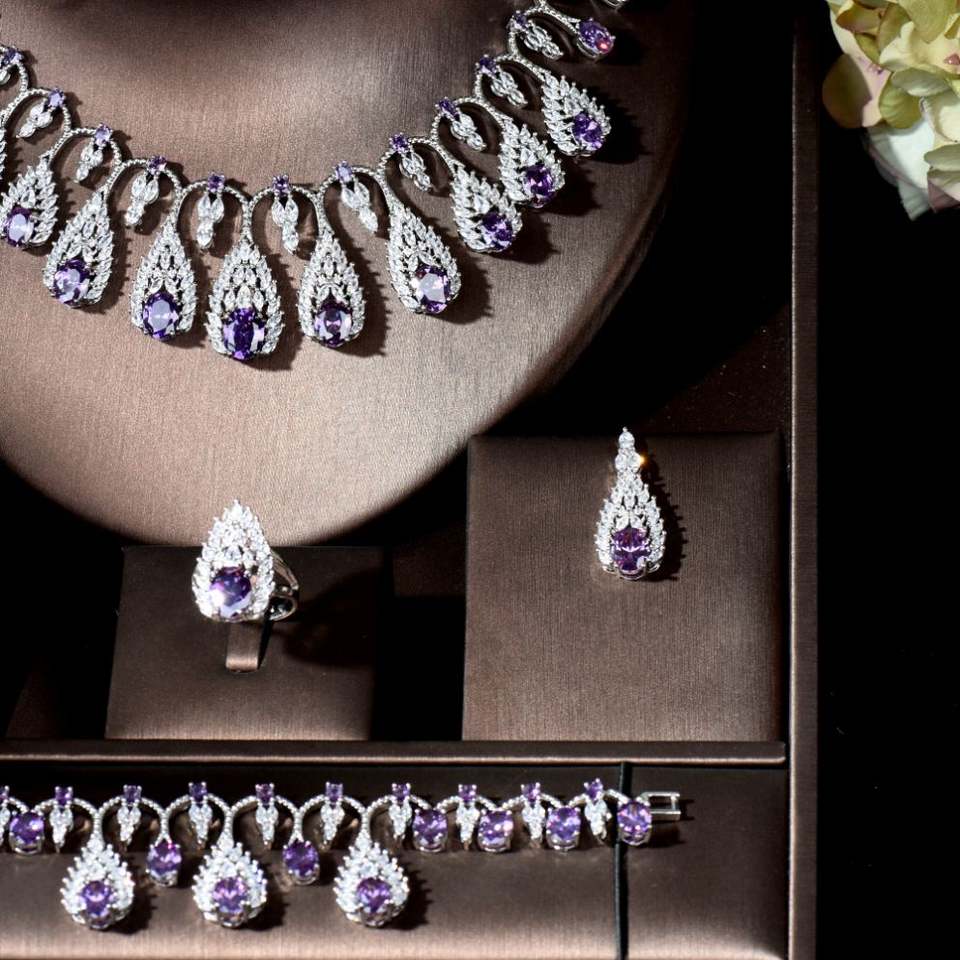 HIBRIDE New Arrival Necklace and Earring Set Purple Color Jewelry Set for Women Bridal Accessories Nigeria Wedding Bijoux N-997