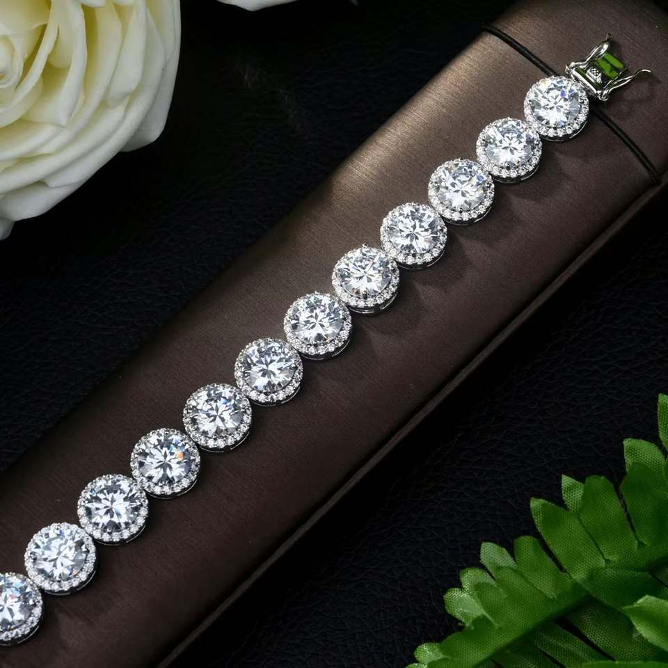 HIBRIDE New Luxurious Women Round Shape Bracelet Bride Wedding Zircon Bangles High Quality CZ Inlay Bracelet for Girl Party B-78