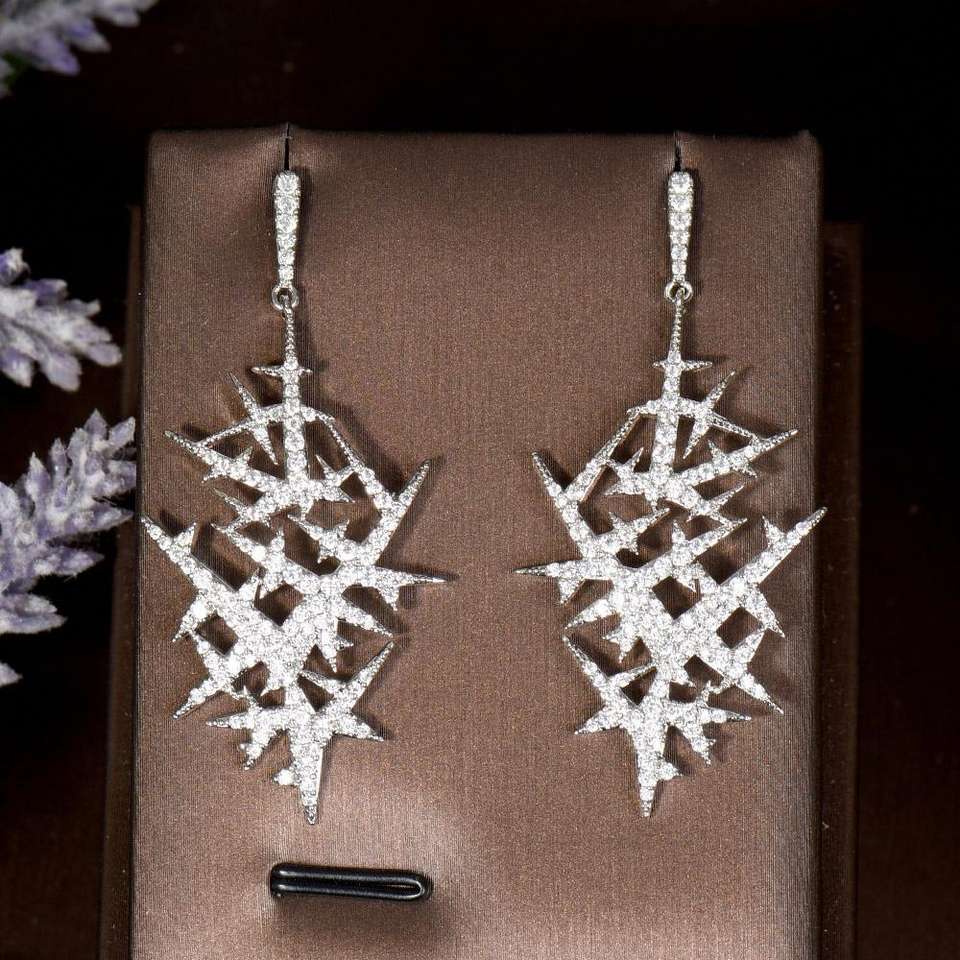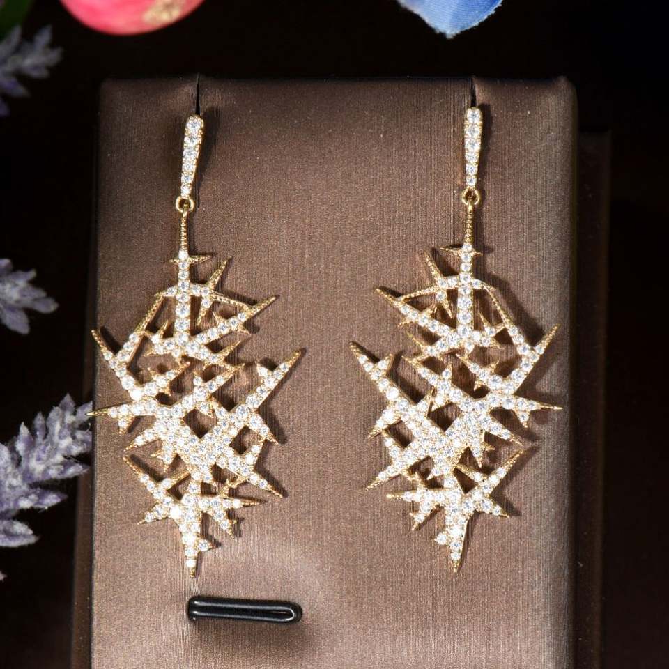 HIBRIDE Newest Vintage Women Wedding Party Jewelry Gold Color Cubic Zirconia Geometric Long Drop Earrings Accessories E-124