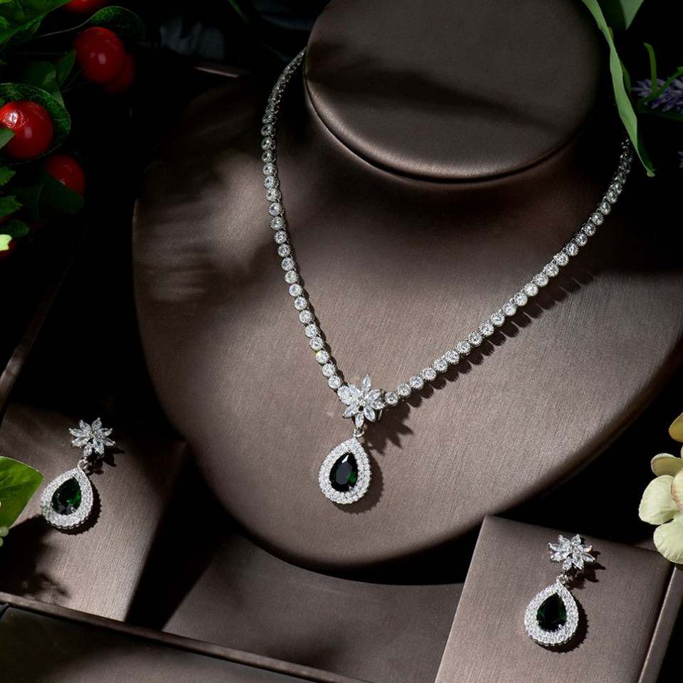HIBRIDE Nigerian Green Water Drop Jewelry Sets Fashion Teardrop Cubic Zirconia Jewelry for Women Bridesmaids Engagement N-1352