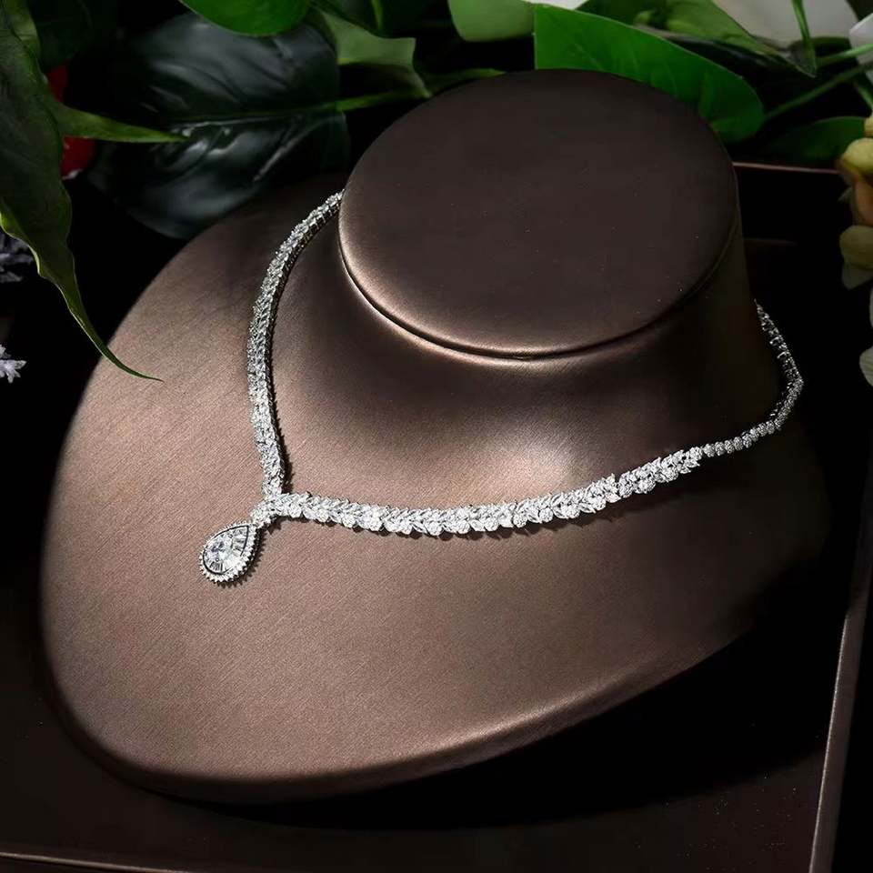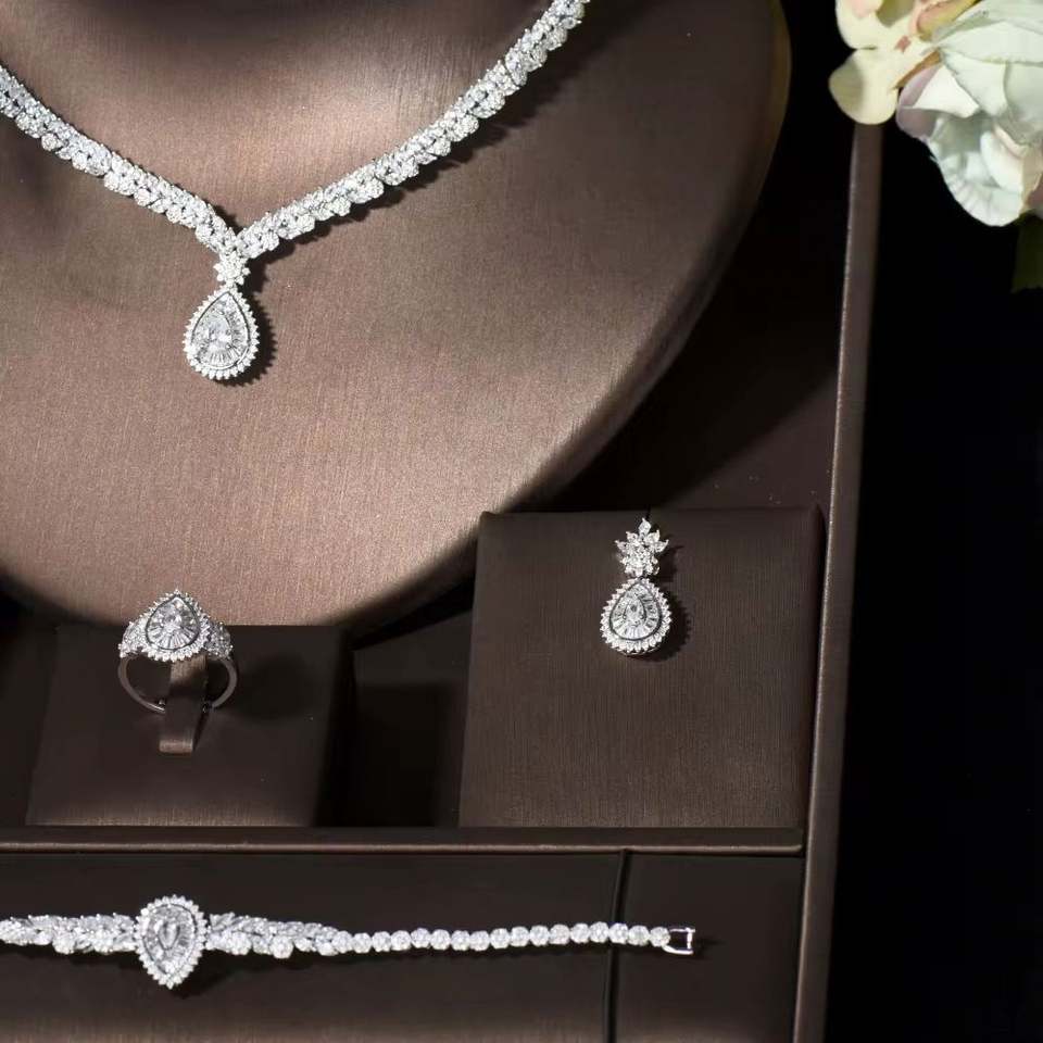 HIBRIDE Romantic 4PCS Water Drop Statement Jewelry Sets for Women Wedding Party Full Zircon Dubai Bridal Necklace Earring S-041