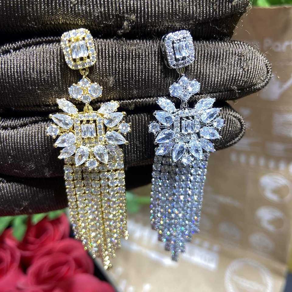 HIBRIDE Sparkling Cubic Zirconia Pave Long Round Square Tassel Drop Wedding Earrings for Women Party Dress Jewelry Bijoux E-516