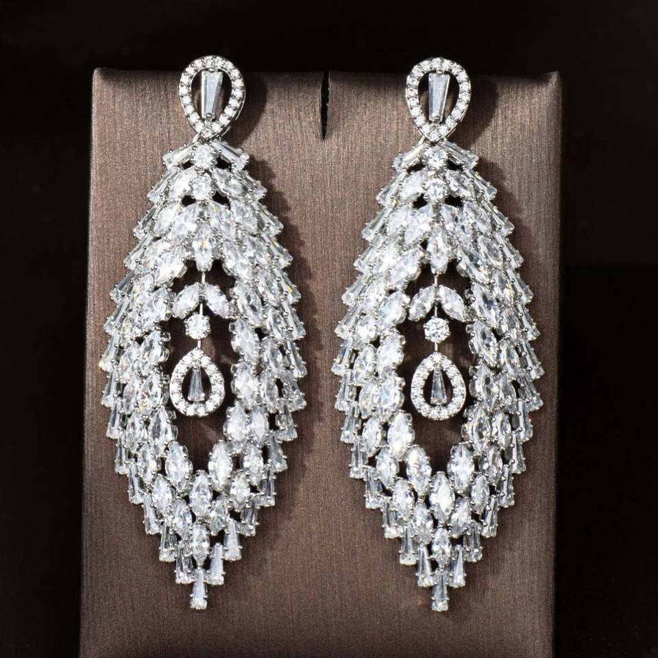 HIBRIDE Trendy Clear Big White Water Drop Cubic Zirconia Women Long Drop Earrings Brazil Style Party Brincos Bijoux Gift E-1045