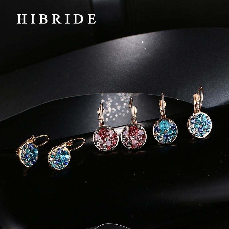 HIBRIDE Trendy Hoop Earrings Red/Blue Cubic Zirconia Gold Color Wedding Party Earrings for Women Engagement Gifts E-31
