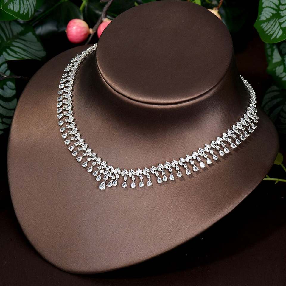 HIBRIDE Water Drop Shape Clear Cubic Zircon Jewelry Set for Women Bridal Wedding 4PCS Necklace Accessories Wholesale N-1275