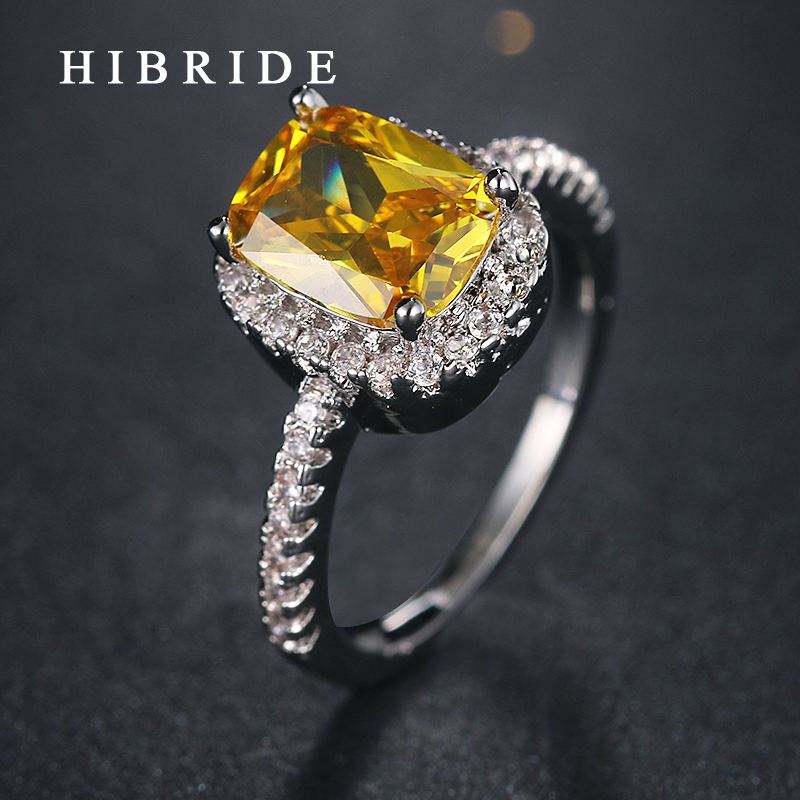 HIBRIDE Women Wedding Cocktail Ring Top Quality Cubic Zircon White Gold Color Rings Wholesale Price for Girl Gifts QSP0010-130
