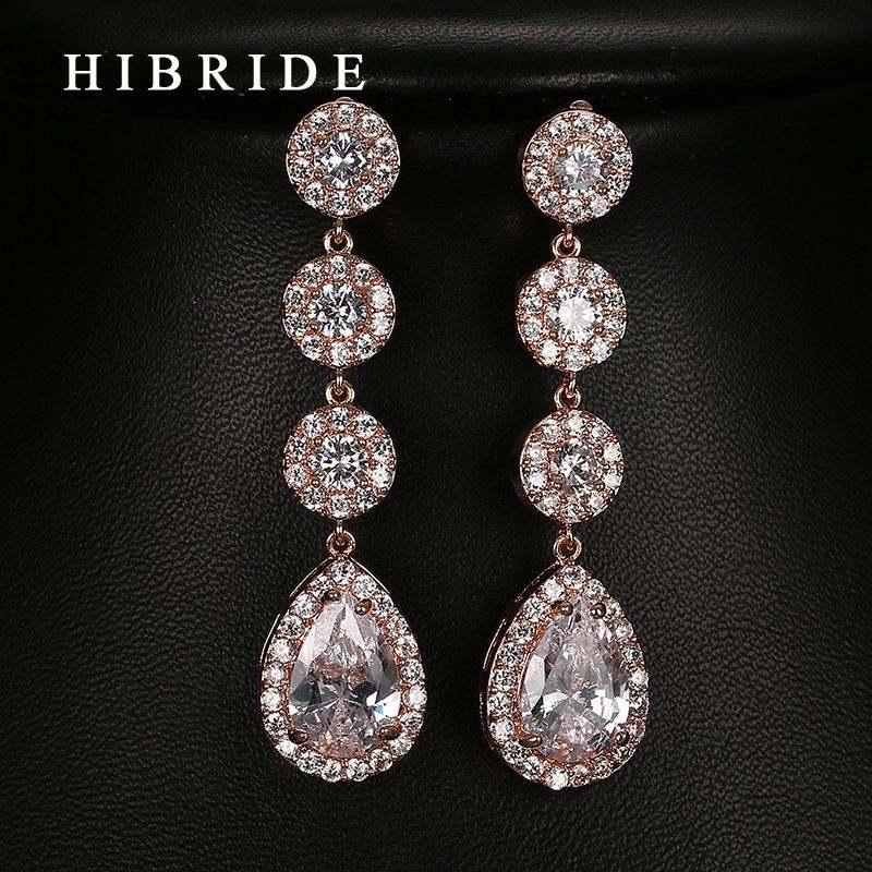 HIBRIDE Women Wedding Cubic Zircon Drop Earrings Rose Gold/white Gold /Gold Color Earrings Wholesale Price E-62