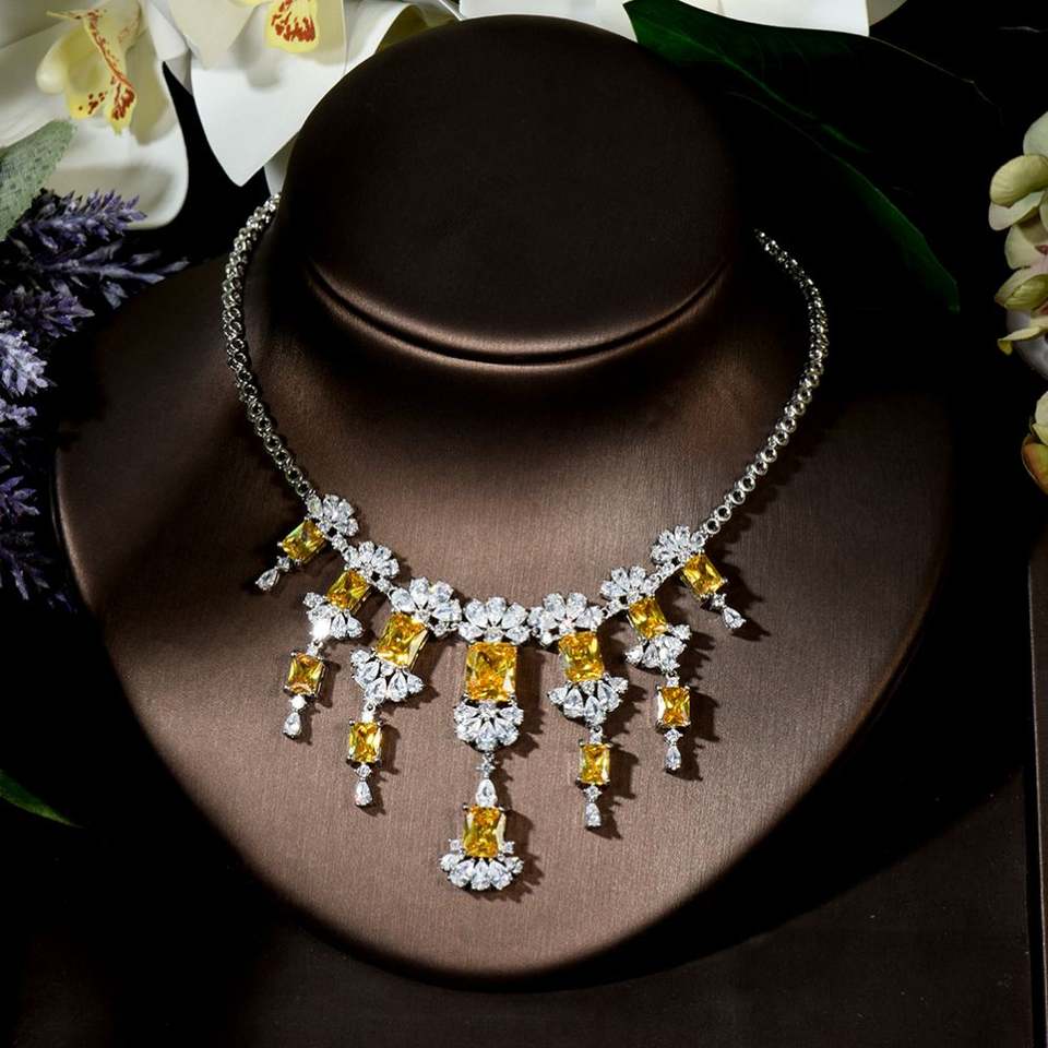 HIBRIDE Yellow CZ Necklace and Earring Set Flower Shape Jewelry Set for Women Bridal Wedding Accessories Bijoux Femme N-908