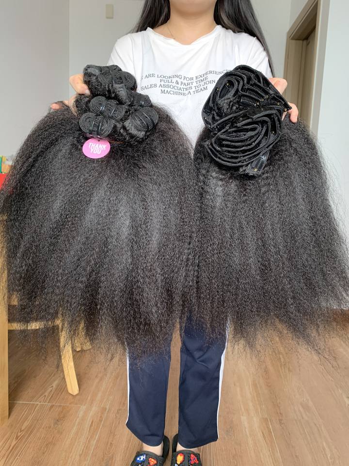 [HIGH QUALITY] Clip in Hair Extensions Afro Kinky Curly Raw Virgin Kinky Straight Clip Ins Human Hair
