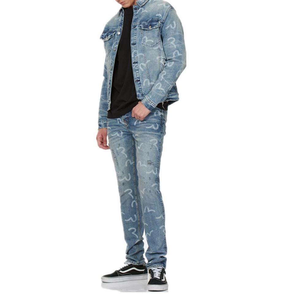 HIGH QUALITY FACTORY VINTAGE COLLECTION ALLOVER SEAGULL HANDPRINT WASH FIT DENIM JEANS