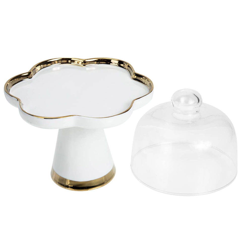 HIGH QUALITY HANDCRAFTED CERAMIC SERVING DECORATIVE DESIGNER CAKE STAND WITH DECORATIVE GLASS DOME DESSERT CAKE STAND