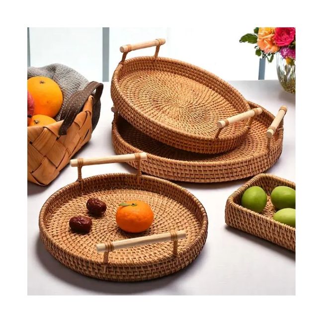 HIGH QUALITY Wicker Tray Mother of Pearl Inlay For Serving Gourmet Beverages And Adding A Luxurious Decorative Accent To Tables