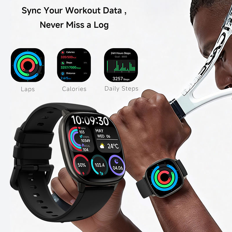 HKSF HD17 Air Black AMOLED Smart Watch 100+ Sports Modes BT Call Health Monitor Waterproof