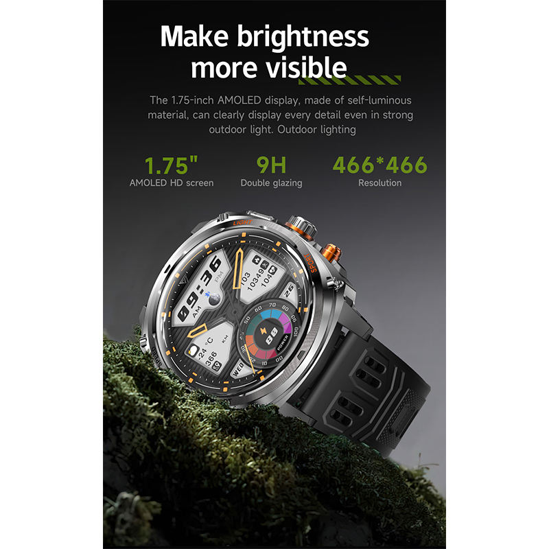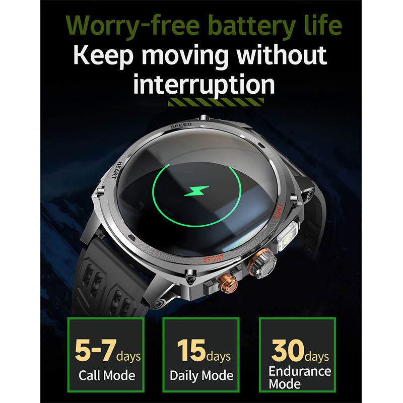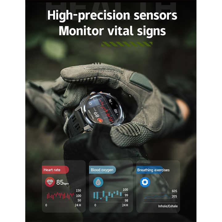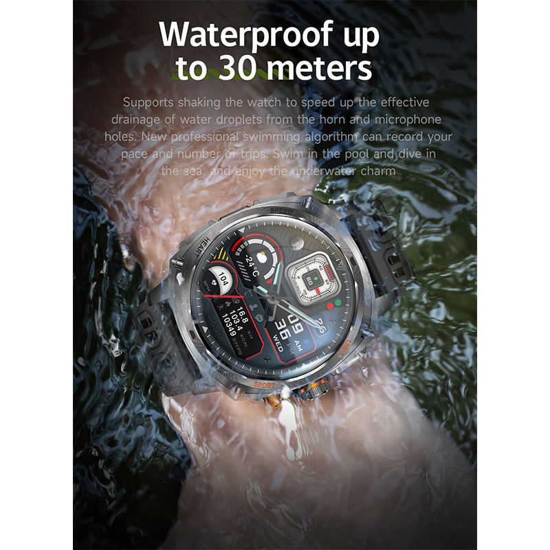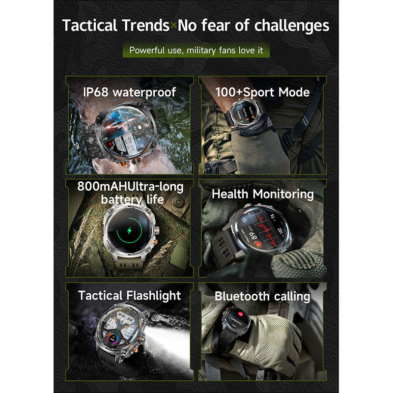 HKSF V95 Tactical Outdoor Sports Watch IP68 Waterproof 800mAh Battery Tactical Flashlight BT Calling Health Monitoring