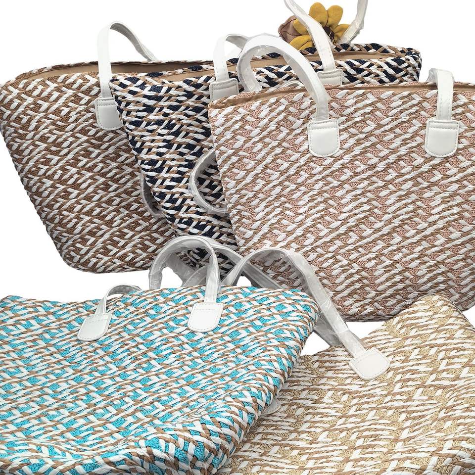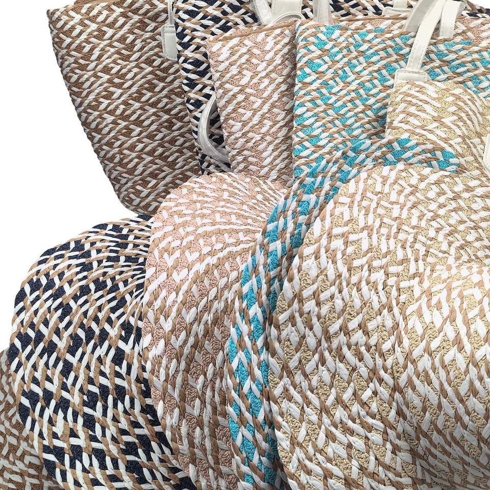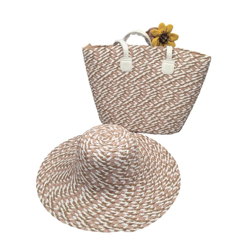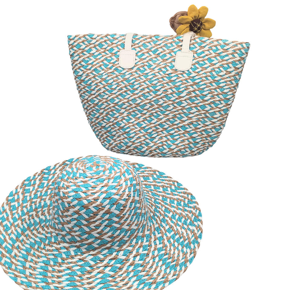 HKZB Customized Matching Series Woven Color Straw Hat Tote Bag Set Large Capacity Formal Versatile Outdoor Travel Beach Hat