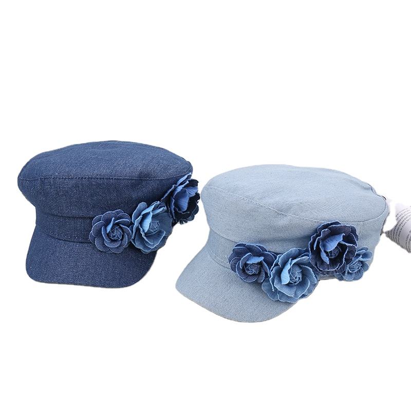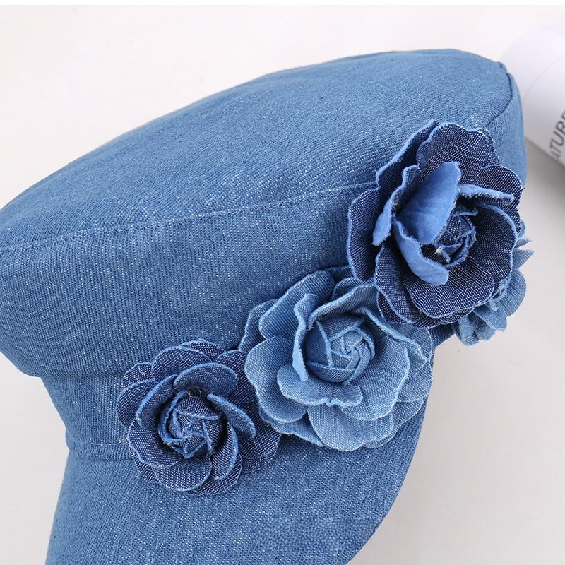 HKZB Fashion Denim Multi-Panel Hat Women 3D Floral Embroidery Adjustable Fit Oversized Head Circumference Face Slimming Effect