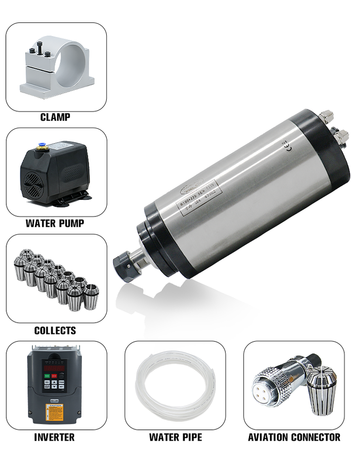 HLTNC 3kw Water Cooled Spindle + 220v/380v/110V 3/4kw Frequency Inverter HY +ER20 Collcet +100mm Spindle Clamp+ Pump for CNC