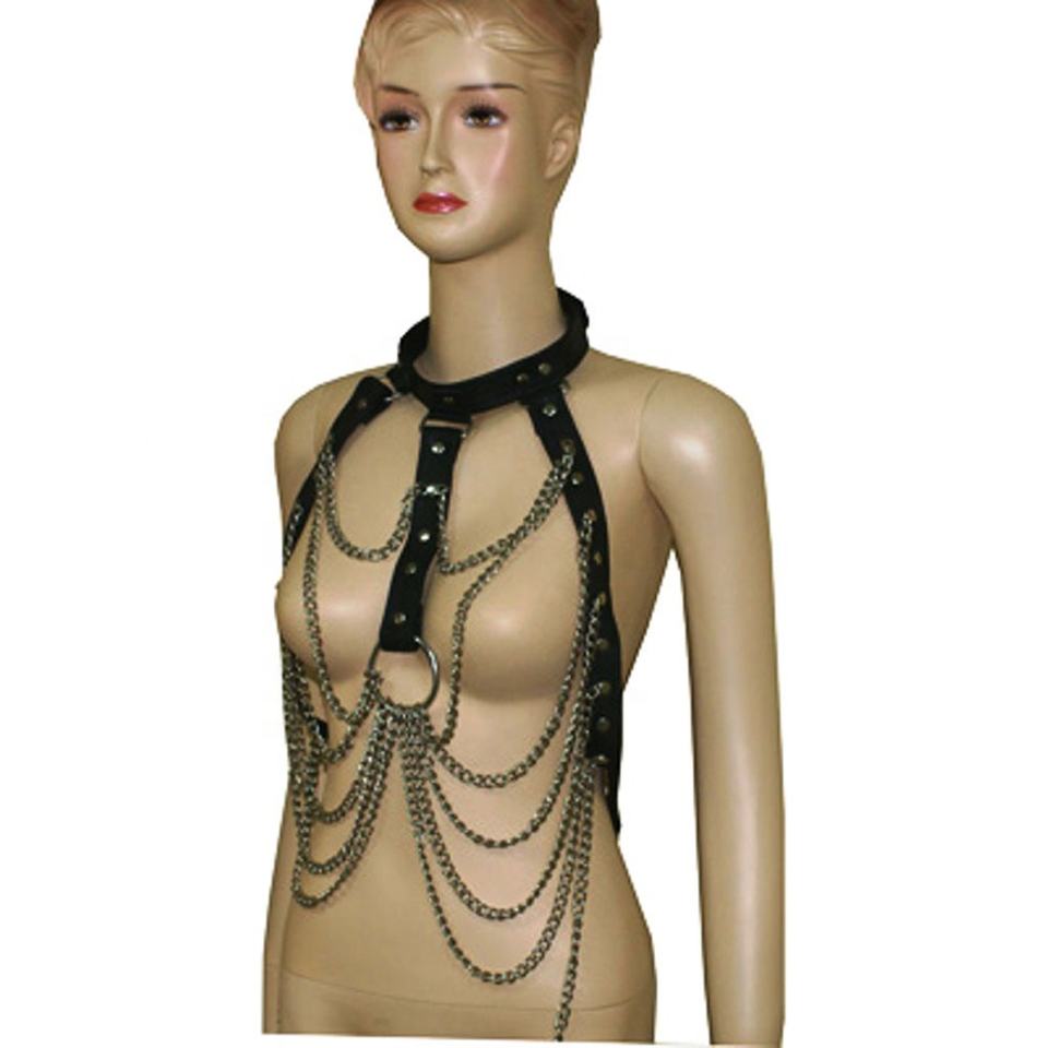 HMB-429D WOMEN GENUINE LEATHER HARNESS BLACK CLUB LADY MISTRESS HARNESS BDSM FASHION WEAR