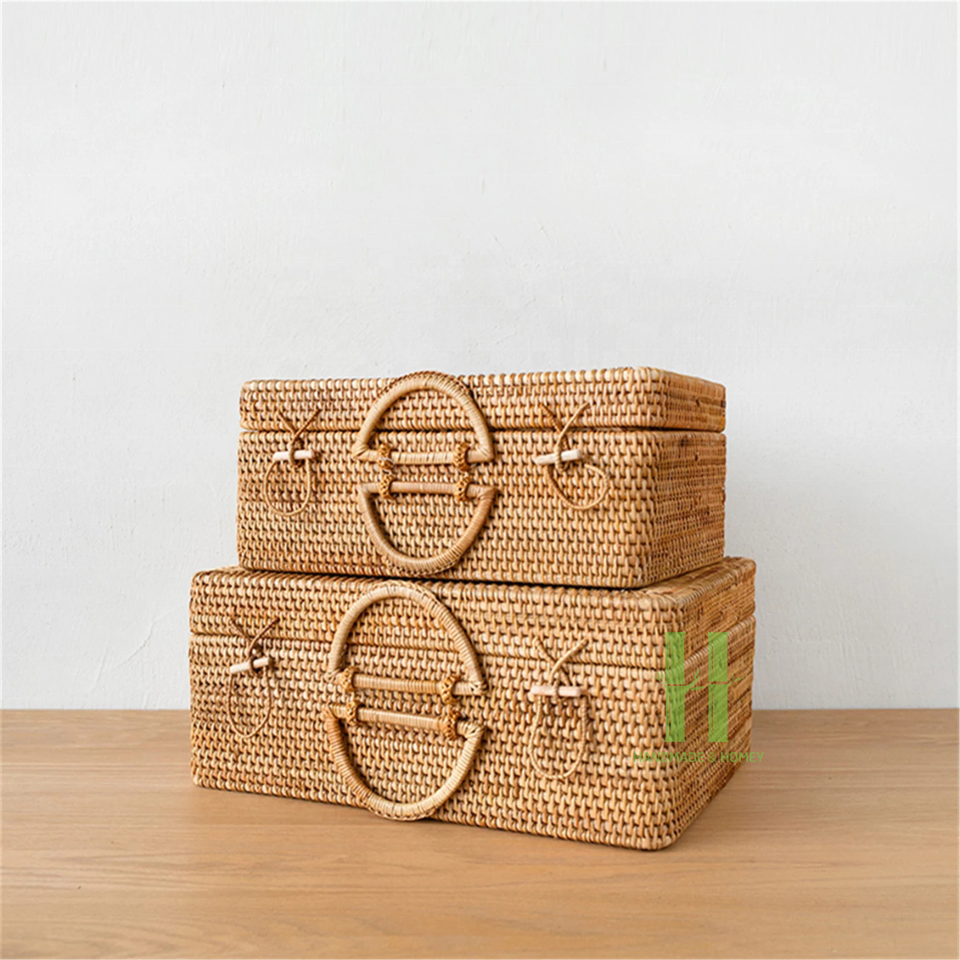 HNH Craft Rattan Luggage for Summer Vacation Storage Basket for Home Organization Handmade and Packing in Vietnam