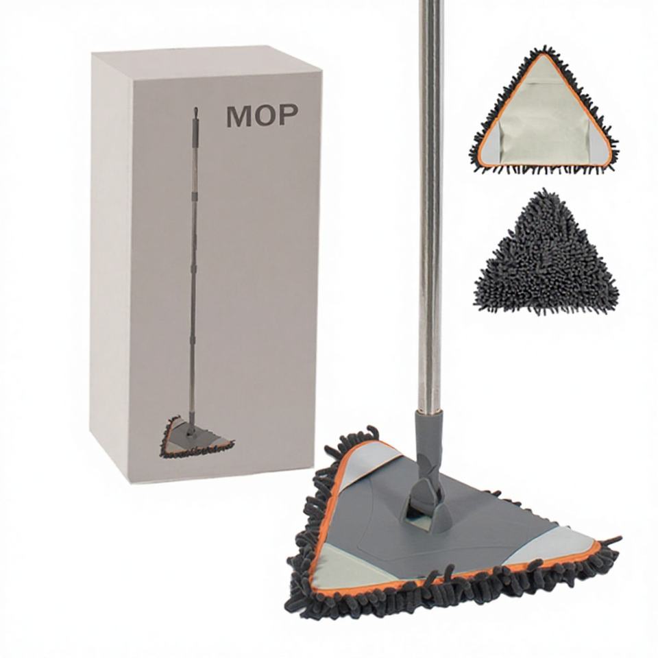 For 2025 Steel Pole Triangle Flat Mop with Self-Wringer Extendable Handle 6 Pads for Wall & Ceiling Cleaning